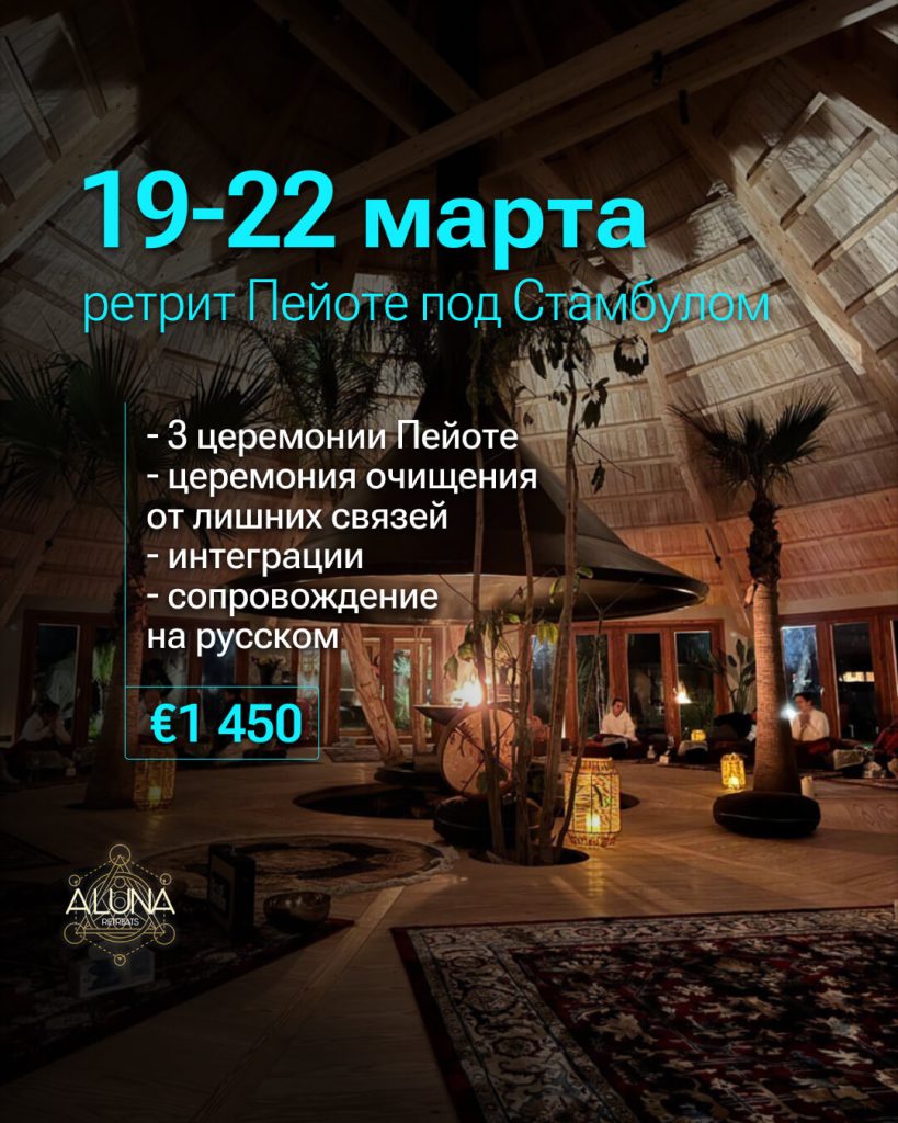 Обращаем ваше внимание: Алуна Ретритс не занимается продажей Аяваски, Ибоги, Пейота и другой сакральной медицины. И мы никому не рекомендуем использовать ее вне соответствующей традиции и без грамотного проводника.