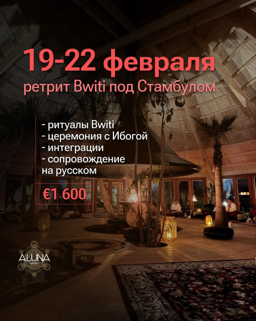 Авансовый взнос по ретриту с Аяваской € 350, по ретриту Bwiti – € 450